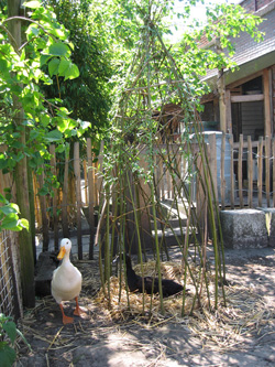 Hier staan de hokken van de konijnen en Indische loopeenden. De dieren zijn niet alleen leuk om te bekijken of te aaien, maar ook nuttig. De dieren worden onder andere gevoerd met de restanten van het voedsel van de omwonenden en de natuurvoedingswinkel Estafette op de Biltstraat. De mest uit de hokken wordt weer door een deel van de tuinders gebruikt.